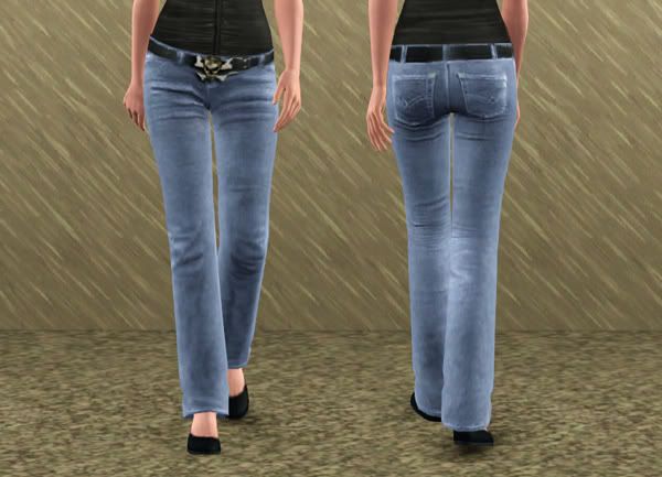 In the Sims 2 days, I converted the Jeanette Biedermann outfit to a more updated look because I loved the top and the belt buckle.  Well, I miss that outfit, so I decided to convert it for the Sims 3!  I figured some of you guys might like it, so here it is.